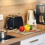 The accommodation offers convenient self-catering facilities, including a full kitchen with a microwave oven, an electric kettle, and a refrigerator. Travellers can also enjoy their meals in the restaurant Restaurant Dux, which is just 550 metres away.
